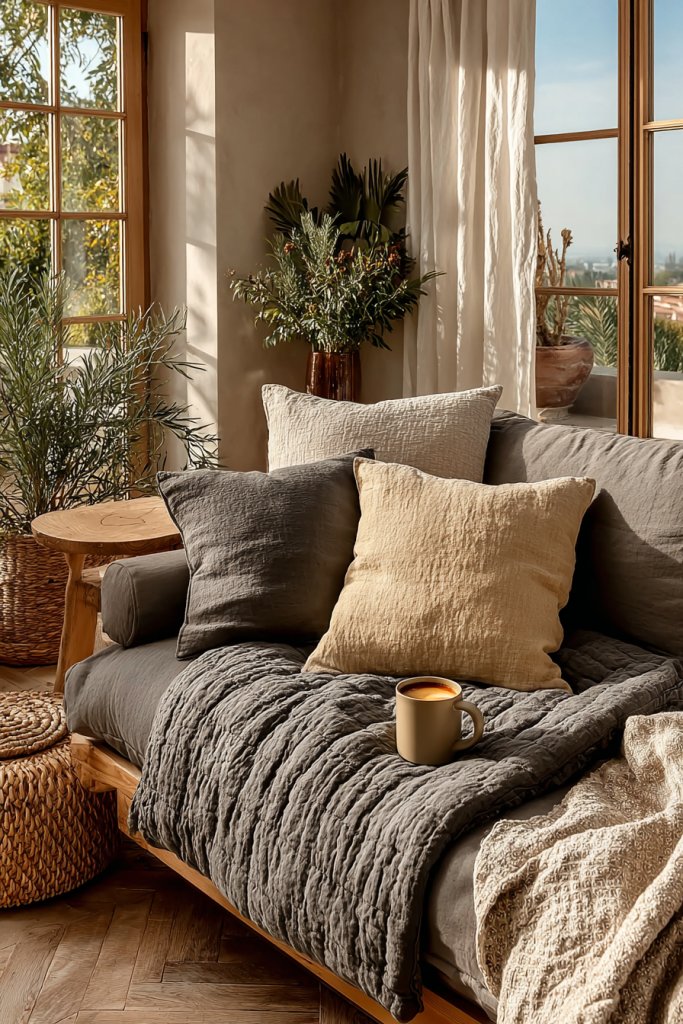3. Layer Textured Linen or Cotton Textiles for Cozy, Natural Comfort