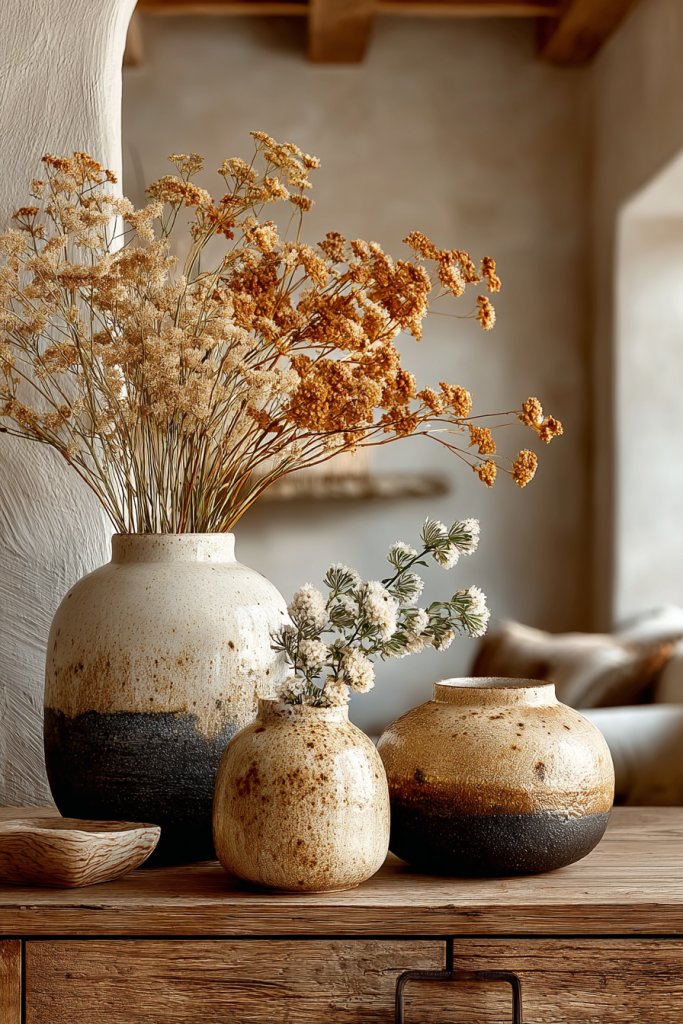 4. Display Handmade Ceramic Vases with Fresh or Dried Botanicals