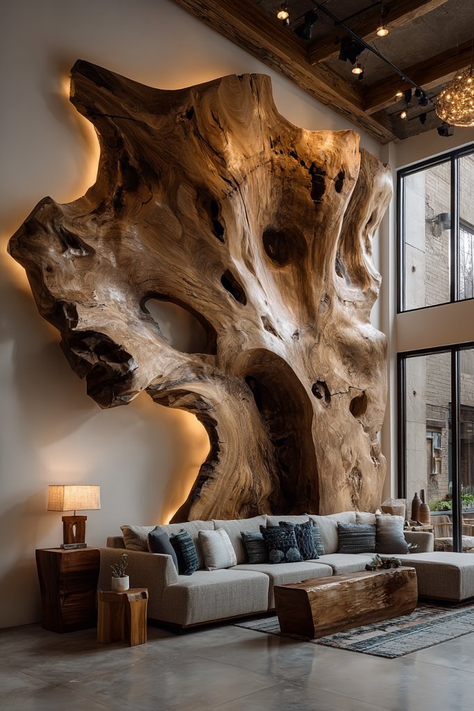 8. Add Sculptural Wooden Accents as Statement Pieces in Living and Dining Areas