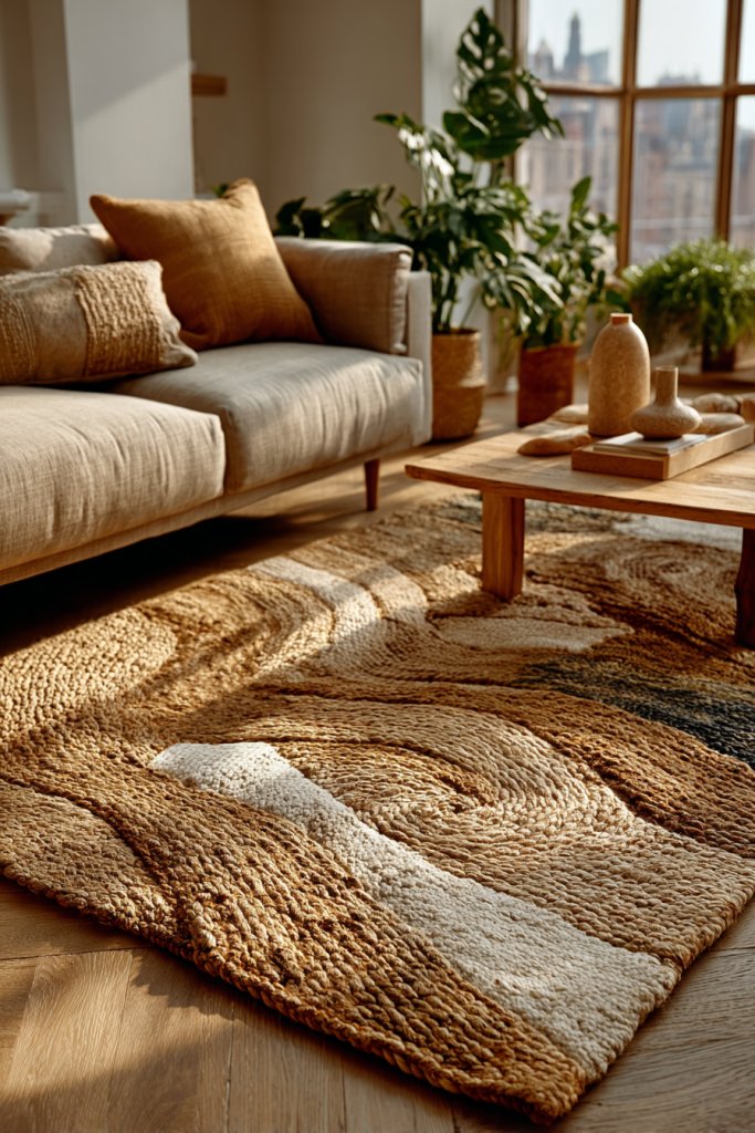 9. Incorporate Eco-Friendly Area Rugs with Organic Patterns and Natural Fibers