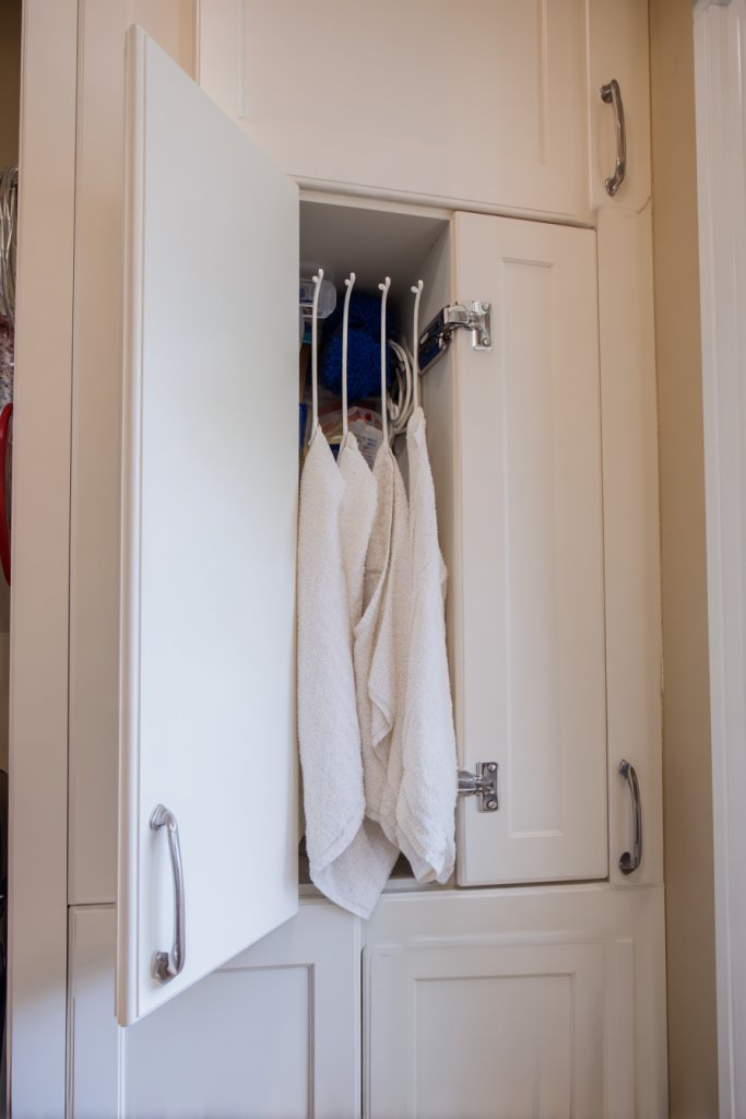 19. Use Over-the-Cabinet Door Hooks for Dish Towels and Cleaning Supplies