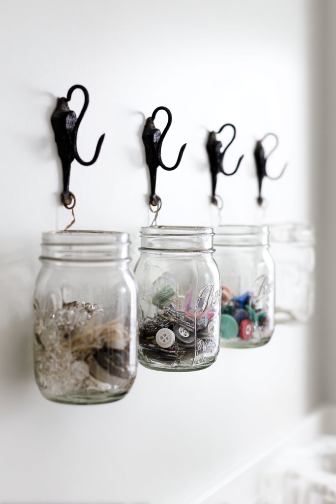 5. Hang Mason Jar Storage for Small Items and Craft Supplies