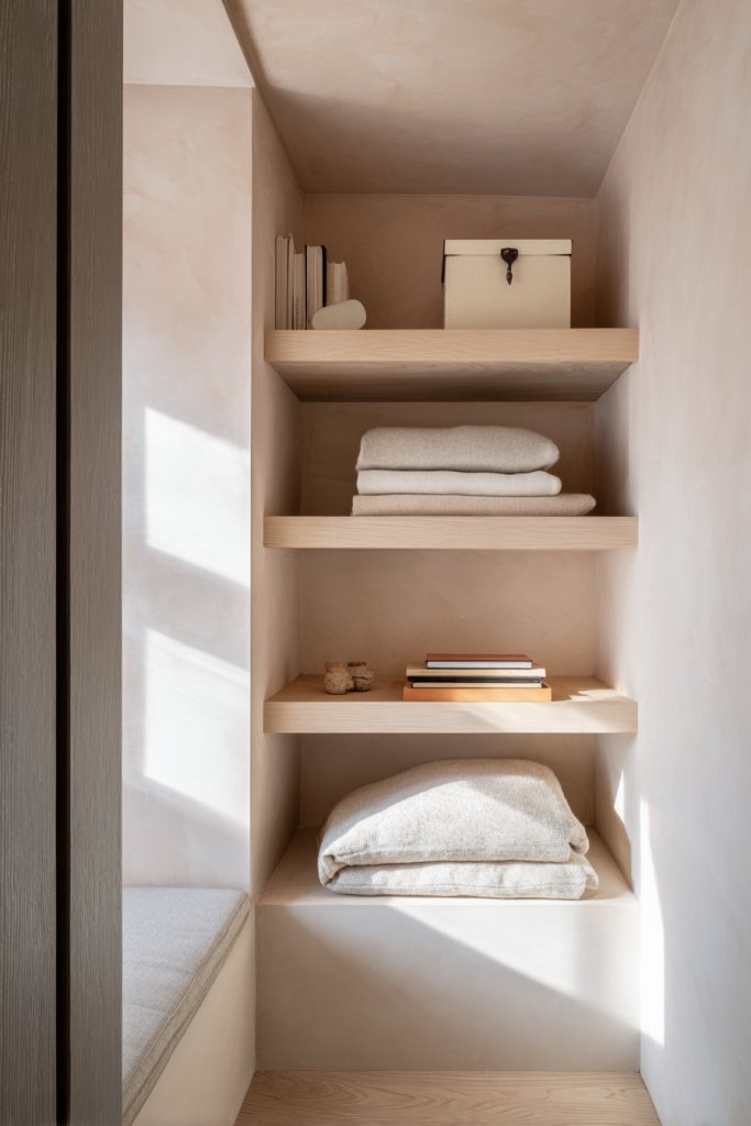 11. Creative Use of Niche Spaces for Shelving or Mini Closets
