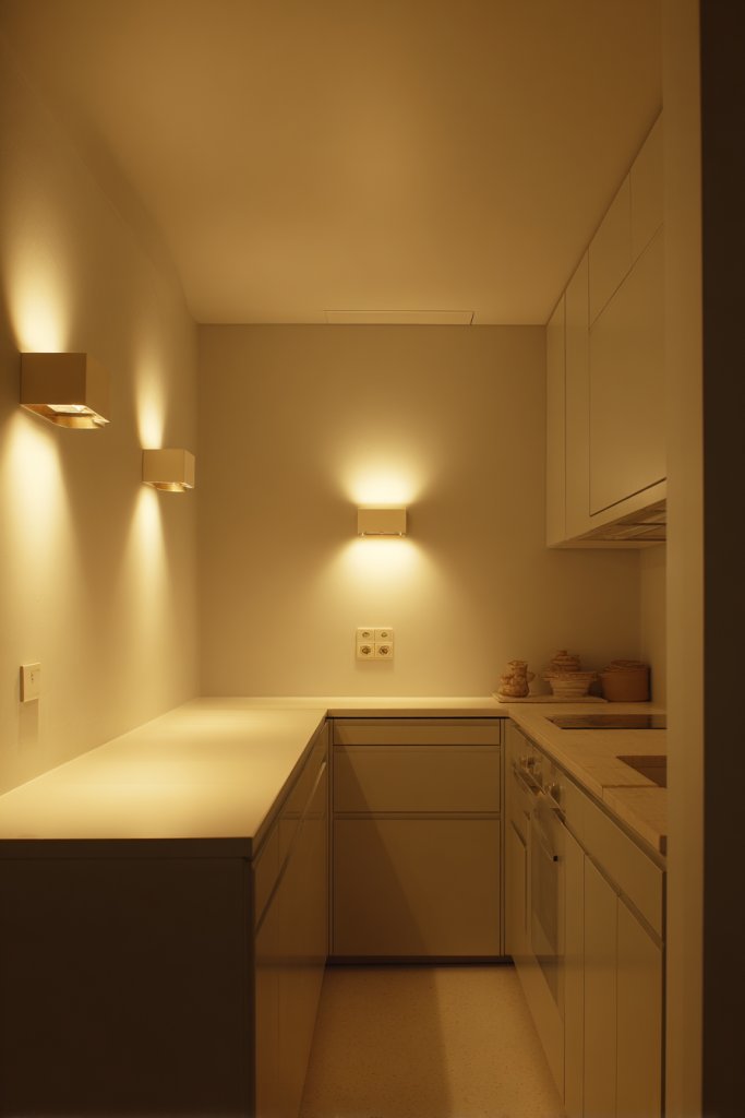 Picture wall-mounted sconces casting soft, ambient light along the walls, complemented by under-cabinet or shelf lighting that illuminates specific areas. The combination creates a cozy, layered glow that enhances textures and colors. The light reflections bounce off light-colored walls, amplifying brightness. The setup feels warm and inviting, perfect for relaxing evenings or intimate gatherings. It’s a subtle, stylish way to enhance your room’s ambiance.