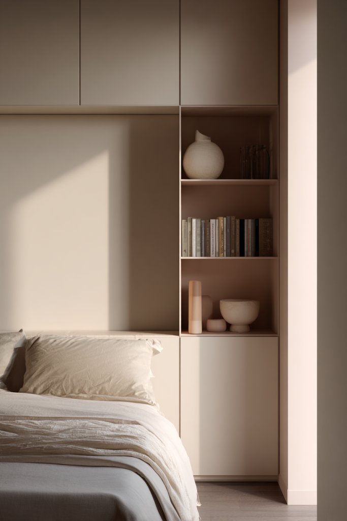 Visualize a custom-built bed frame with integrated nightstands and storage drawers, all seamlessly blending into the wall. Shelves, benches, or desks are crafted into alcoves or wall spaces, creating a unified aesthetic. The finish matches your decor—whether painted, stained, or laminated—to look like an architectural element. The result is a clean, uncluttered room that feels expansive and thoughtfully designed.