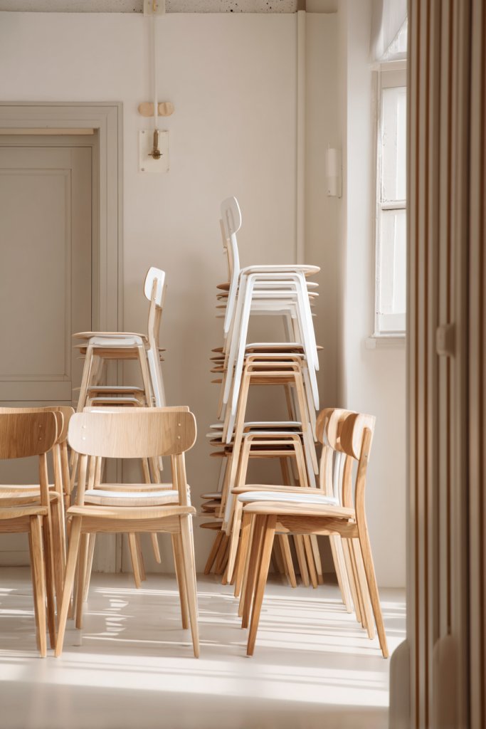 Visualize a set of stacking chairs or nesting tables that tuck neatly away when not in use. When needed, they expand into a full dining set or extra seating, with sleek finishes and simple designs. The furniture’s compact form keeps your room feeling uncluttered, while versatile configurations add personality. The look is modern and functional, with the flexibility to adapt at a moment’s notice.
