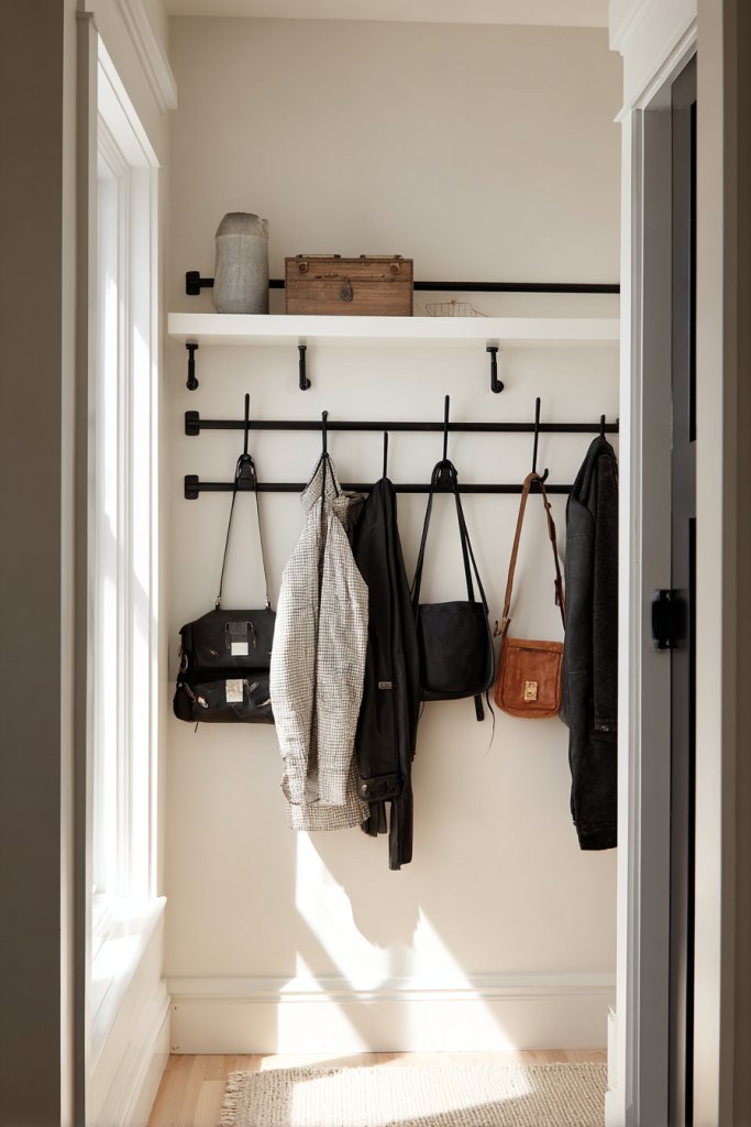 8. Vertical Storage Racks and Hooks for Clutter-Free Walls
