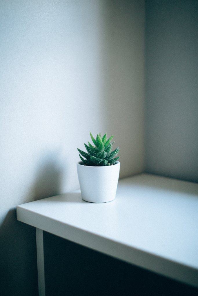 Picture a small, textured ceramic pot with a vibrant green succulent sitting on your desk or shelf. Its fleshy leaves catch the light and add a splash of life to the space. The plant’s simple, modern container complements your decor, whether minimalist or boho. The greenery softens the room’s atmosphere, creating an inviting and peaceful study nook. It’s an easy way to bring a little nature indoors without the mess.