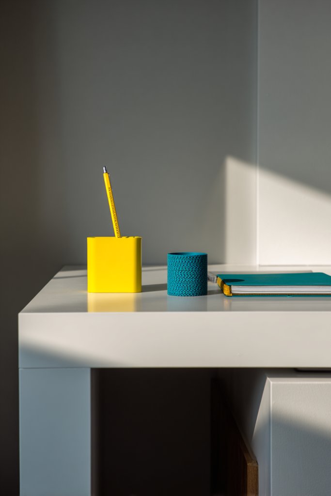 Imagine a set of pastel-colored stationery holders, bright pens, or a cheerful desk clock in soft yellow. These items brighten up a neutral desk without overpowering the space. They catch your eye in a good way, inspiring creativity and positivity. The colors complement the room’s overall palette, adding a lively touch that doesn’t clash or compete. The result? A balanced, cheerful environment that motivates you.
