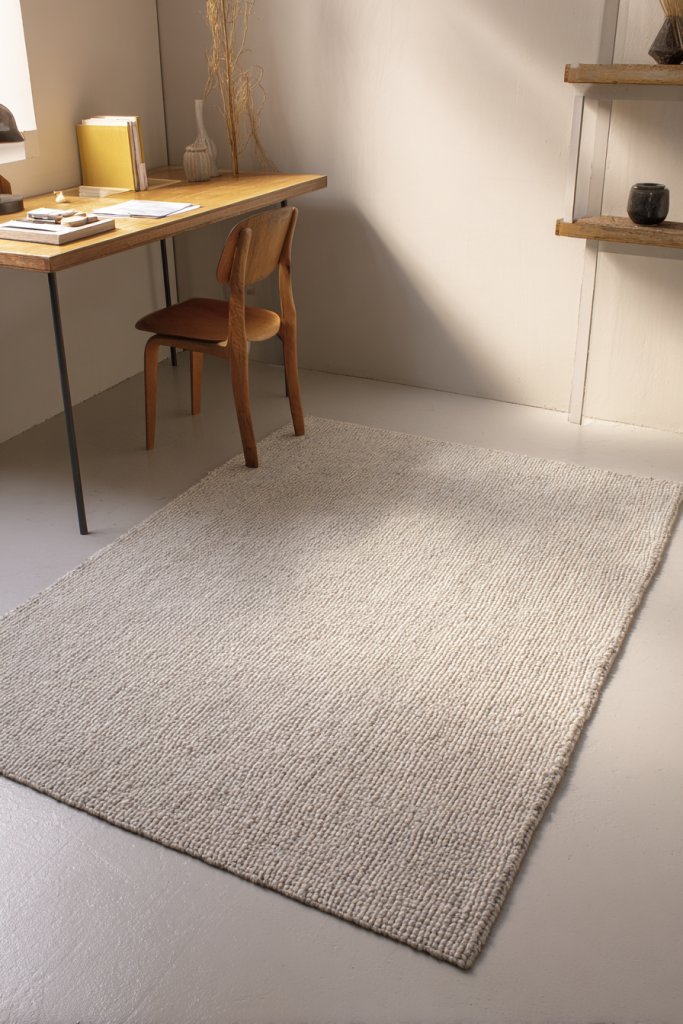 Picture a soft, neutral-toned rug with a subtle pattern, lying beneath your desk and chair. The textured surface contrasts beautifully with sleek furniture, adding depth and visual interest. The fibers invite your feet to sink in just enough to feel comfortable during long study sessions. The room feels more complete, inviting, and less sterile—like a little sanctuary crafted just for you.