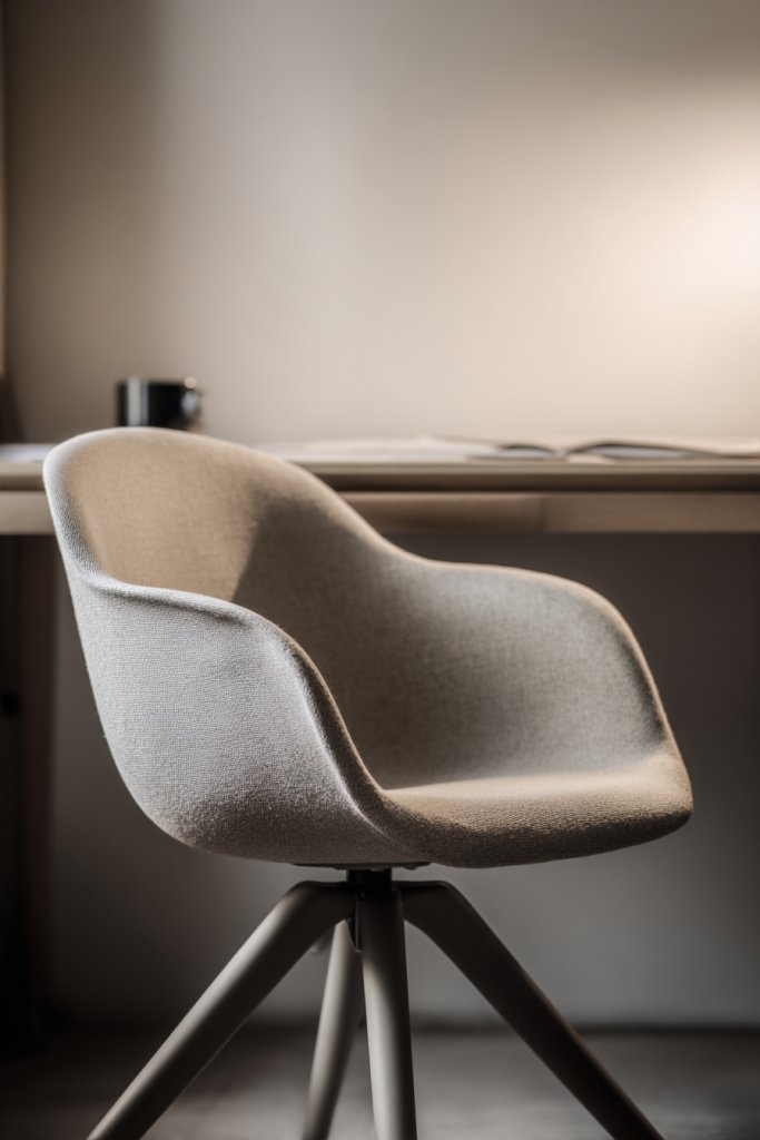 Visualize a sleek, adjustable chair with breathable mesh fabric and lumbar support, hugging your curves perfectly. The chair’s minimalist silhouette fits neatly into small spaces, with a sturdy base that rolls smoothly. Soft, neutral upholstery matches almost any decor, while subtle design details add a touch of sophistication. When you sit down, you immediately feel supported and at ease—ready to conquer your workload.