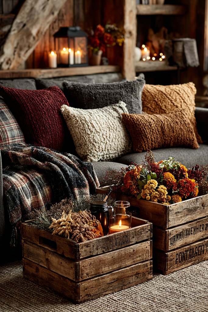 Rustic crates are a budget-friendly way to add warmth and charm while providing functional storage. They connect your decor to a natural, handcrafted aesthetic that’s both timeless and trendy. Once you see how easy it is to create a cozy, styled space, you’ll feel confident experimenting more. Your living area will radiate warmth and personality, no fancy designer required.