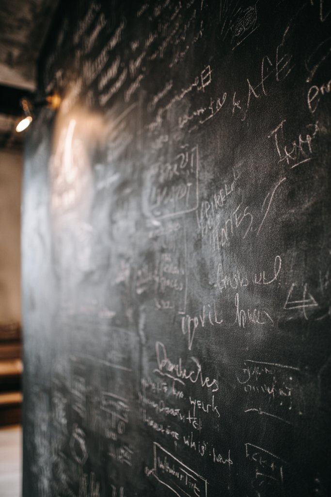 Imagine a large blackboard or whiteboard covering an entire wall, filled with colorful notes, sketches, and motivational quotes. The smooth surface invites interaction, making the space both practical and interactive. Framed with a sleek trim, it blends seamlessly into your room’s design. The wall becomes a dynamic hub for family, friends, or personal reflection.