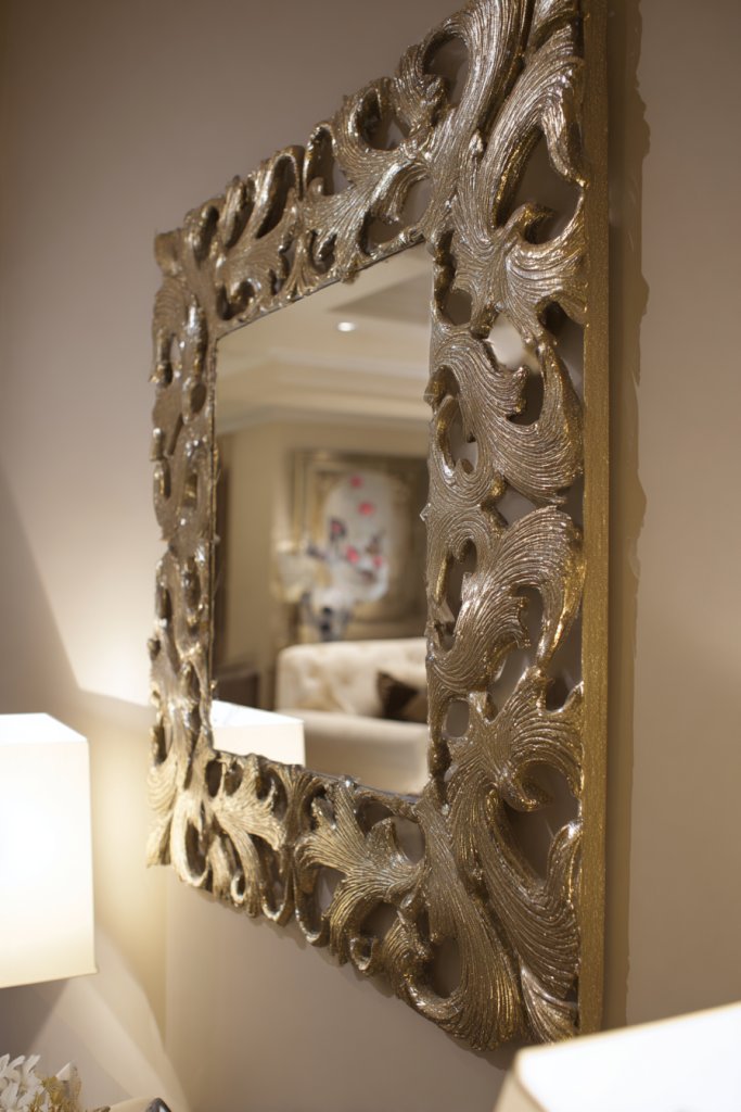 17. Mirror with Decorative Frame in Metallic Finish for Glamour