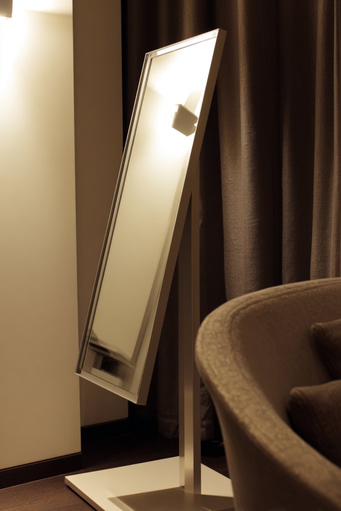 18. Tilted Mirror on a Stand for Flexibility and Style