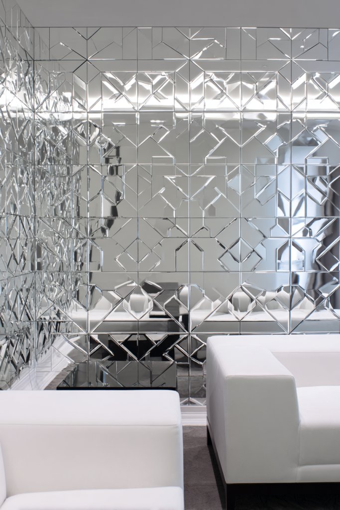 20. Mirrored Accent Wall with Custom Pattern for Unique Design