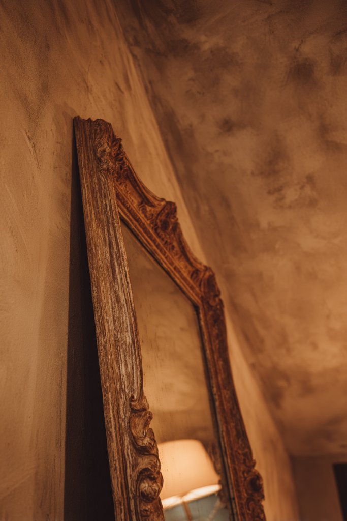 Incorporate decorative elements like vintage trays, soft textiles, or candle holders around the mirror. Use aged brass or distressed wood accessories to enhance the rustic charm. Rotate seasonal textiles or add a few small antique objects for a personalized touch. The goal is to make it feel like a treasured heirloom.