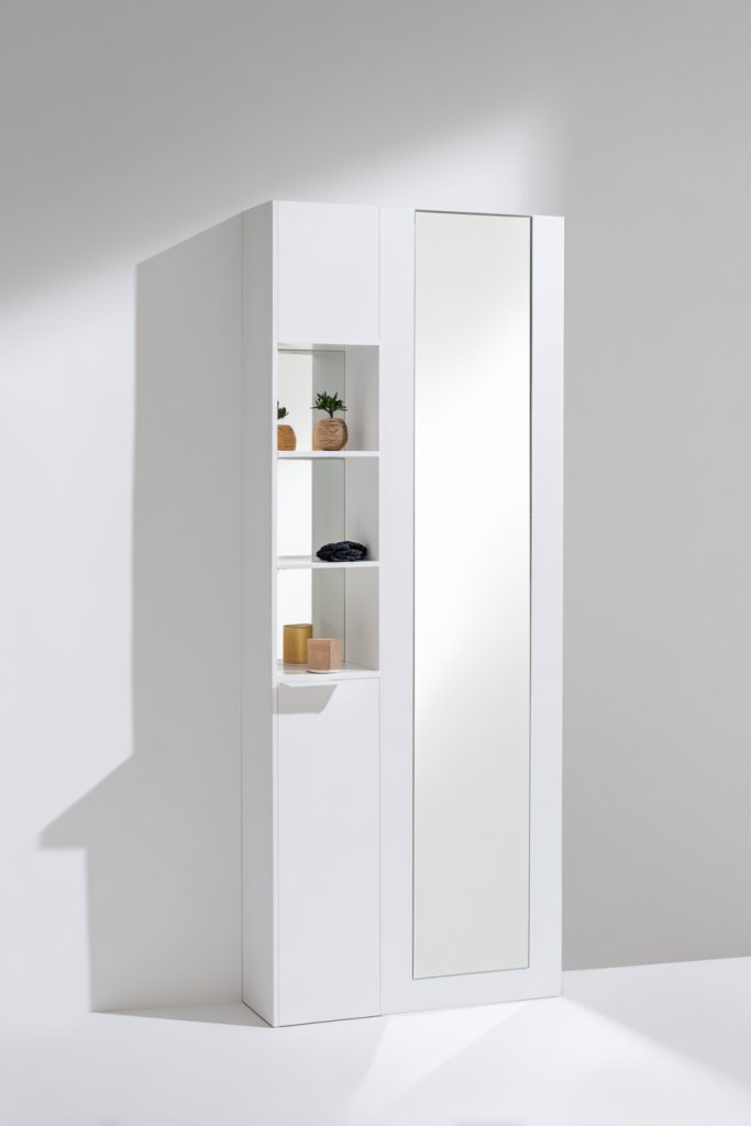 Picture a tall, sleek mirror with discreet shelves integrated into its frame. The shelves hold decorative baskets, books, or everyday essentials, keeping everything within reach. The mirror’s reflective surface brightens the room, while the shelves add depth and dimension. It’s a smart, streamlined look that keeps your space tidy.