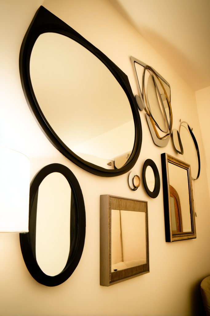 Picture a wall filled with different sized mirrors—some ornate, others sleek—arranged in a curated, asymmetrical layout. The mismatched frames add charm and visual interest, while the reflective surfaces bounce light around the room. The overall effect is lively, vibrant, and uniquely yours. It’s a mix of art and function in perfect harmony.